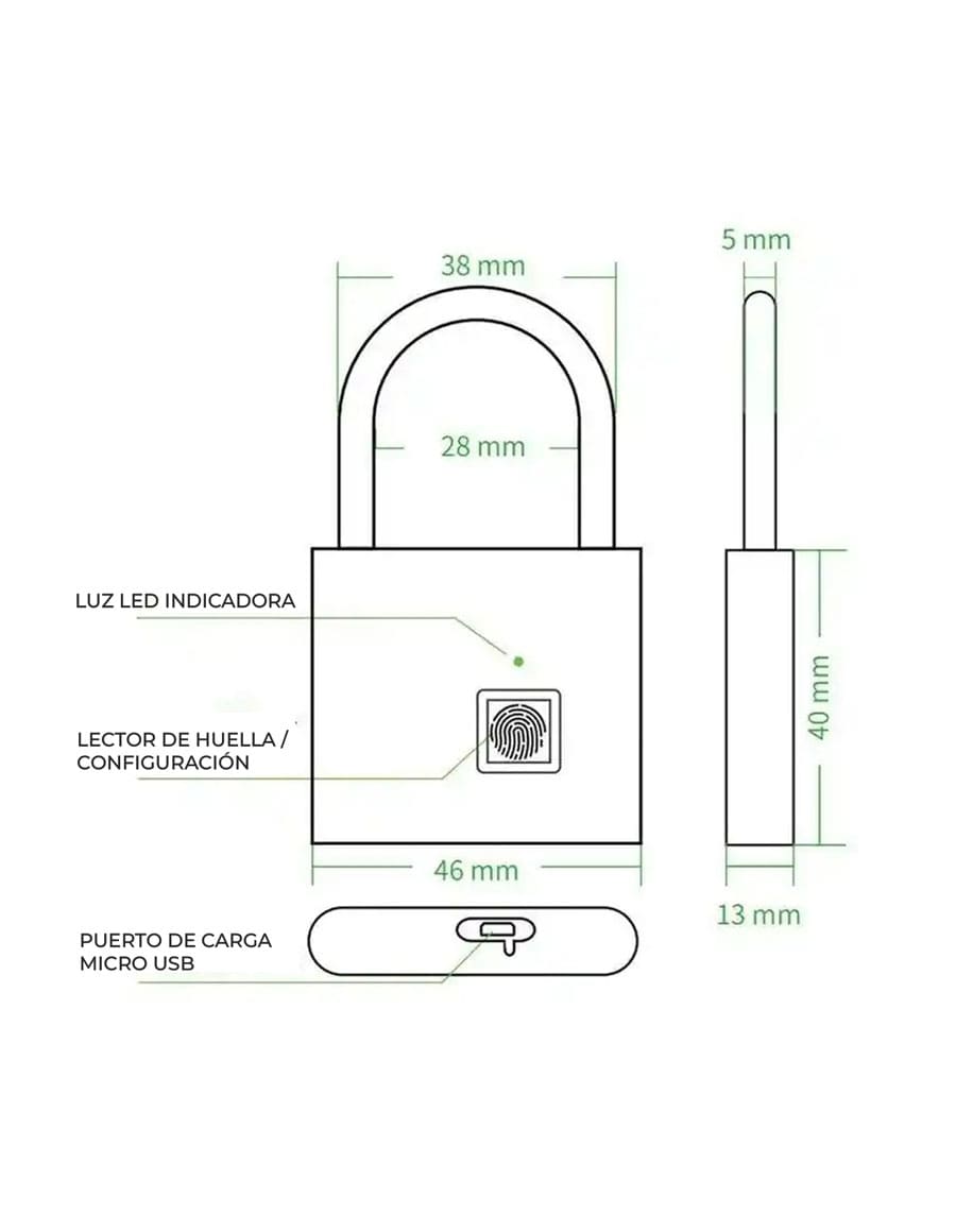- Peso de la cerradura: 0.13kgIncluye: 1 Cable mircro USB.